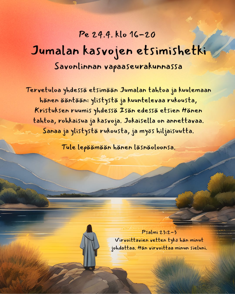 Pe.24.4. klo 16-20 Jumalan kasvojen etsimishetki